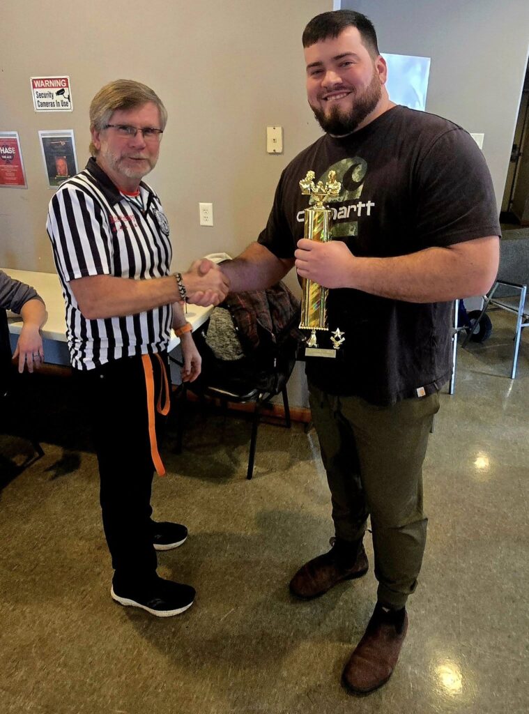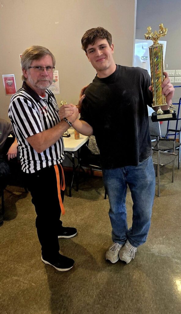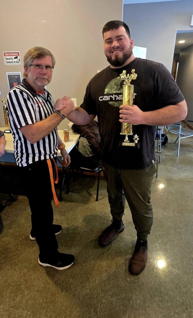 The first competition of 2025 was the Superman tournament. For the first ime we ran and under and over 198 classes. This competition saw the return of Brett Lansburg. After a 2 year hiatus due to work and an injury he picked up where he left off, as the top dog in Atlantic Canada dominating both the right and left hand classes. Nathan Guitard looked very impressive but was no match for Brett’s power.